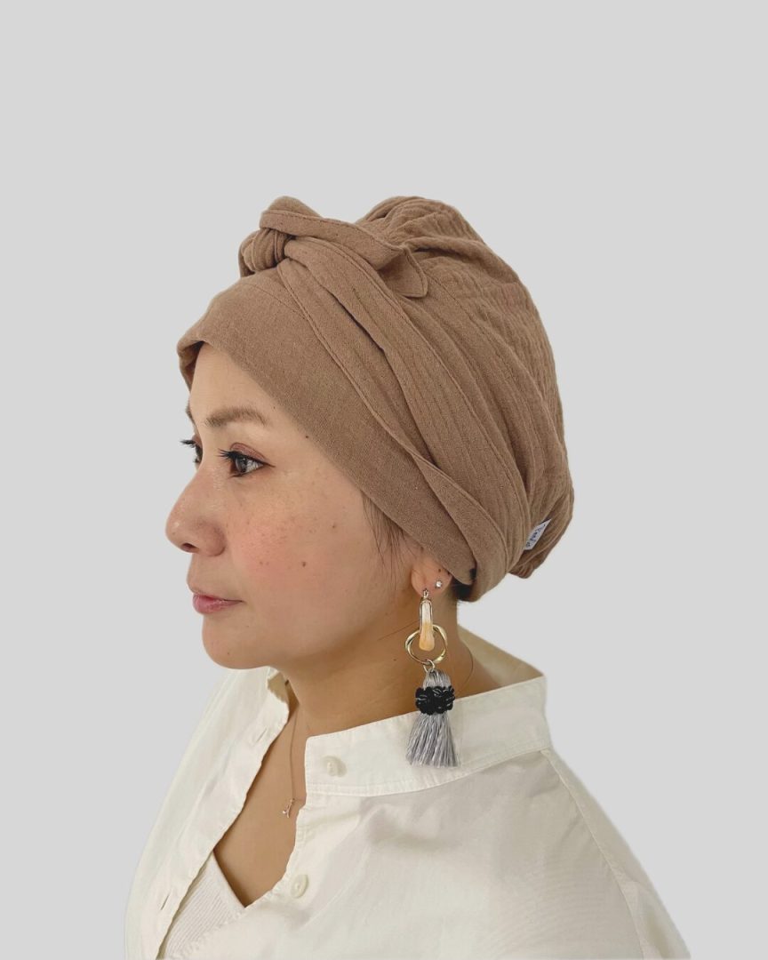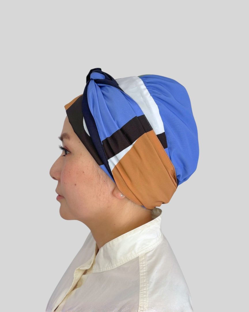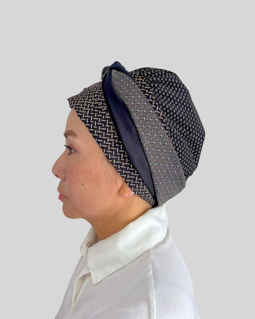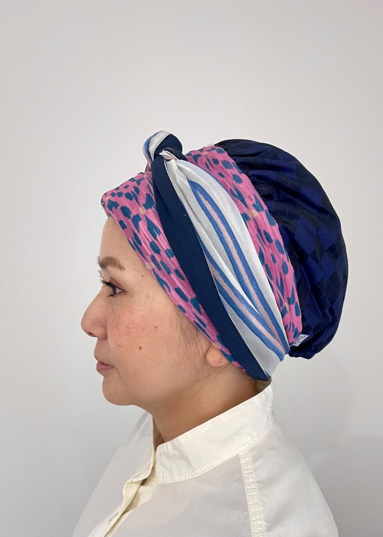 そんな思いで、機能性はもちろん、配色やデザイン、素材にもこだわった医療用ターバン帽子です。