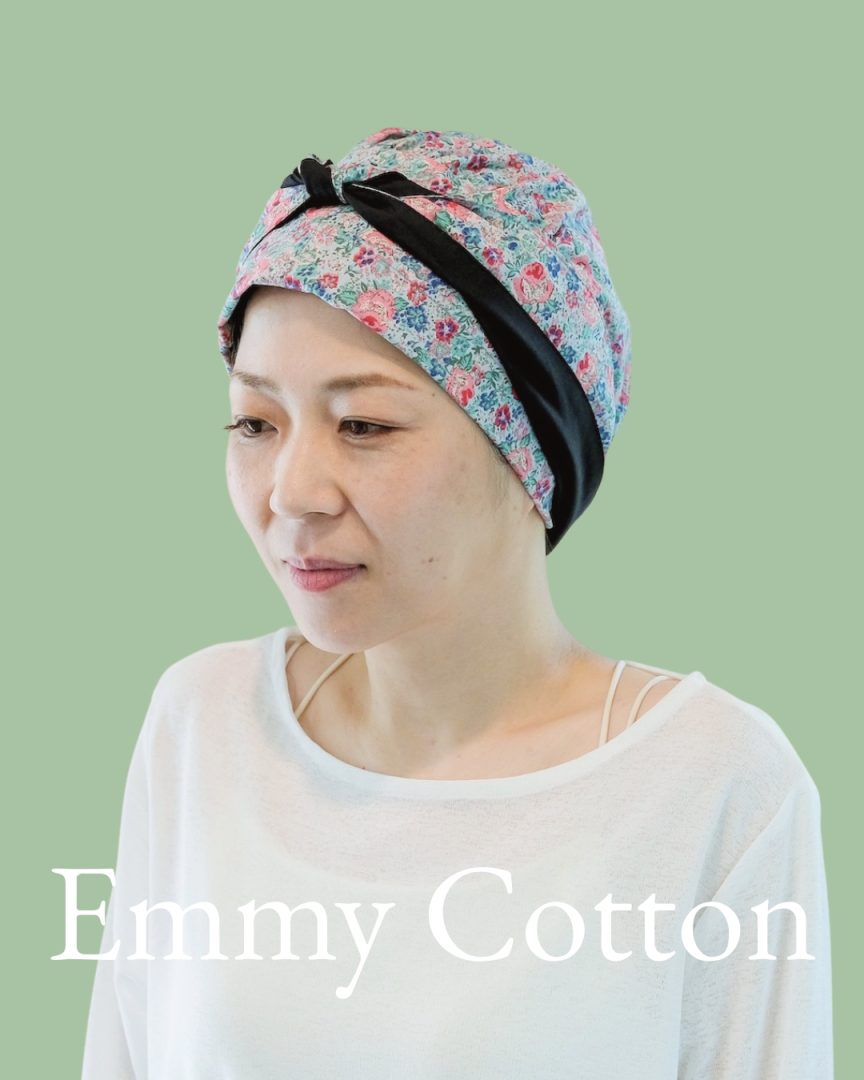大切なお友達、えみさんのために作られたEmmy Cap エミーキャップ。病気になられたえみさんに、少しでも元気になって貰いたくて作製しました。