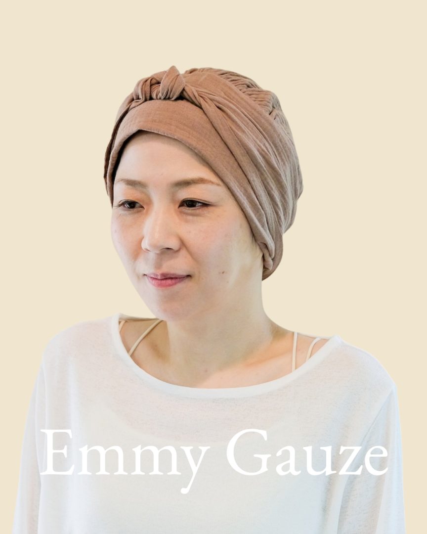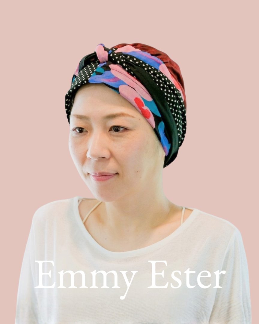 Emmy Capは、頭がすっぽり隠れてずれにくく、簡単に着用できます。程よいボリュームもあり、何と言ってもお洒落!ヘアロスで悩んでいる方に、毎日を少しでも楽しく明るい気持ちで過ごしてもらいたい!