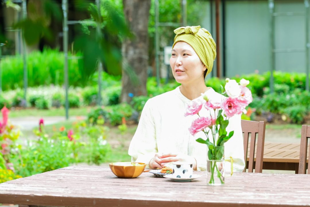 第1回のゲストは、乳がんの経験を経て、現在も笑顔で日常を楽しんでいる きやちゃん。エミーキャップを愛用してくださっています。2025年のエミーキャップウエブサイトのモデルもお願いしました。