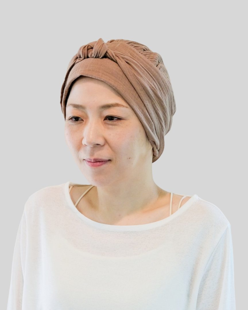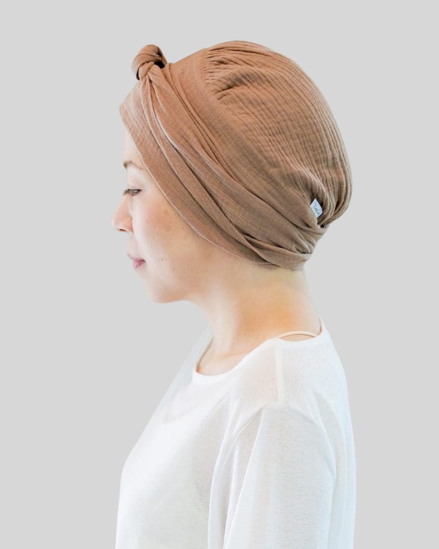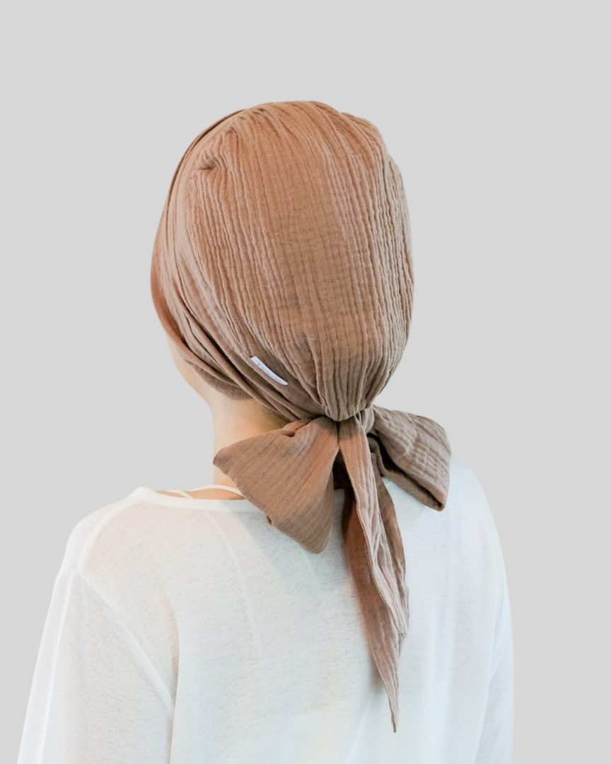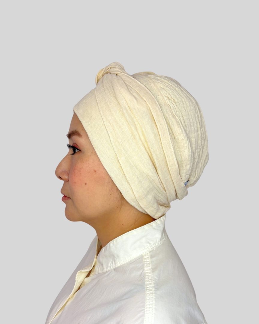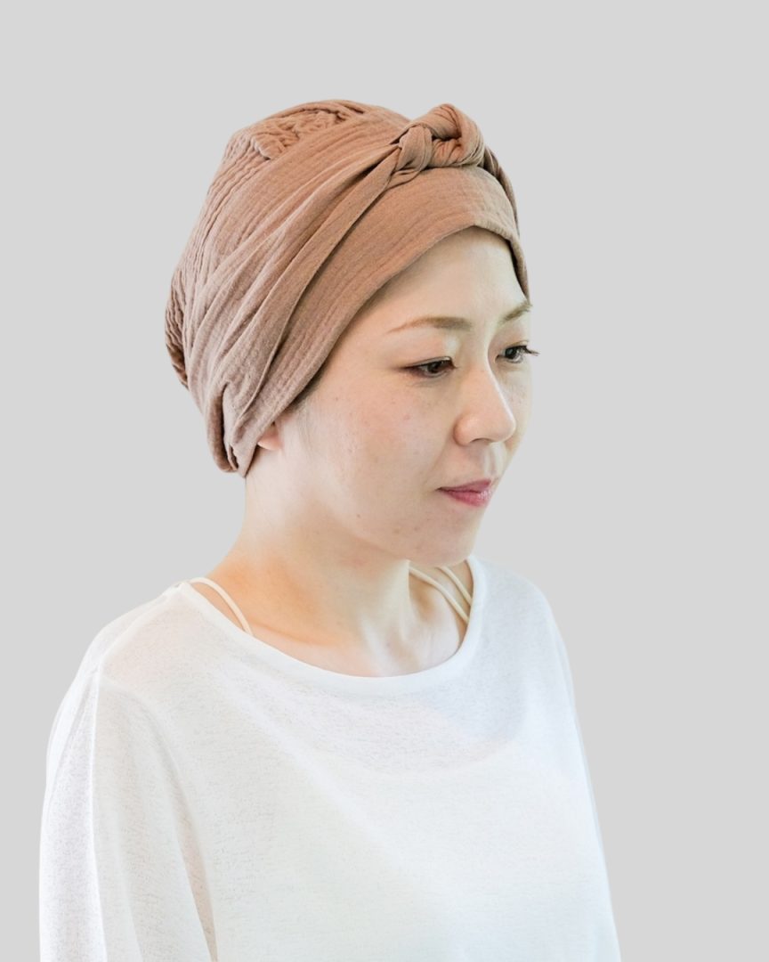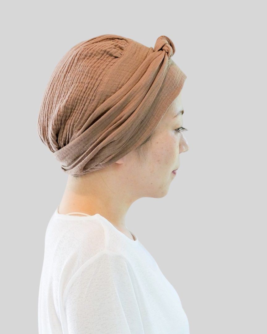 エミーキャップ・ガーゼタイプは、やわらかくて軽く、通気性と吸収性に優れた天然素材です。頭皮が敏感になりやすい治療中の方にも安心してお使いいただけるよう、肌にやさしい綿100%のダブルガーゼを使用。