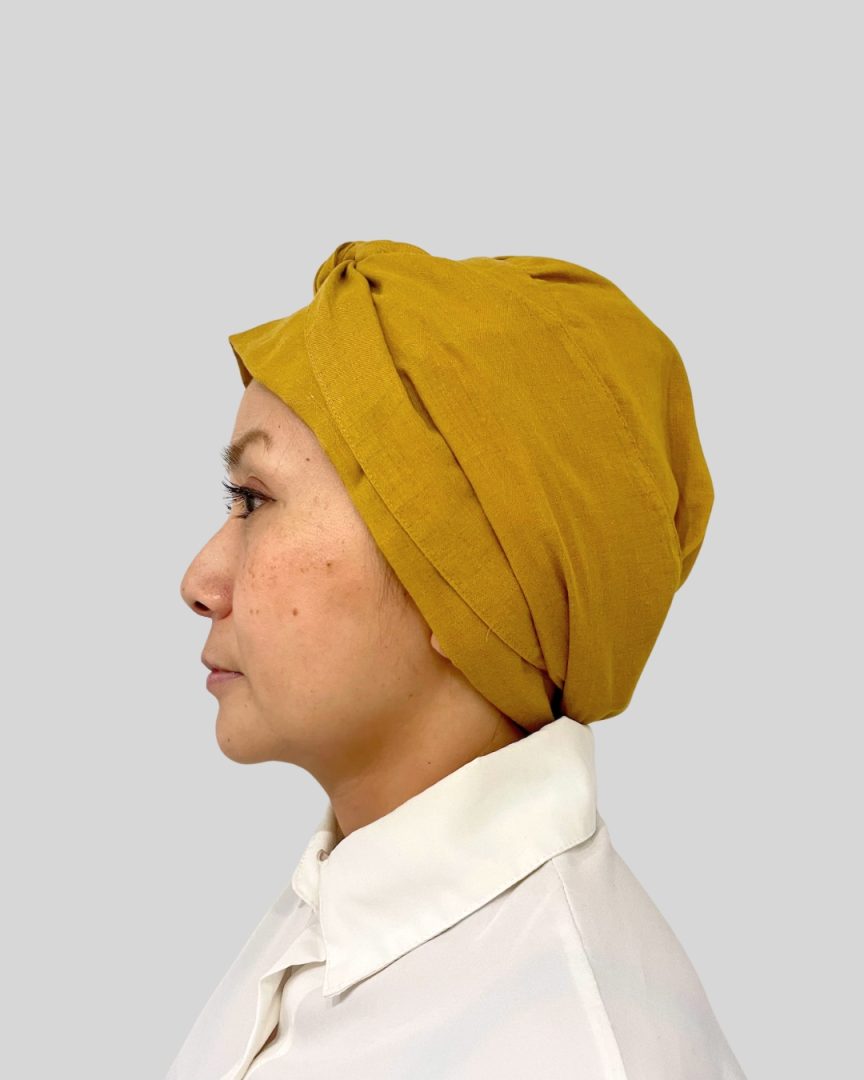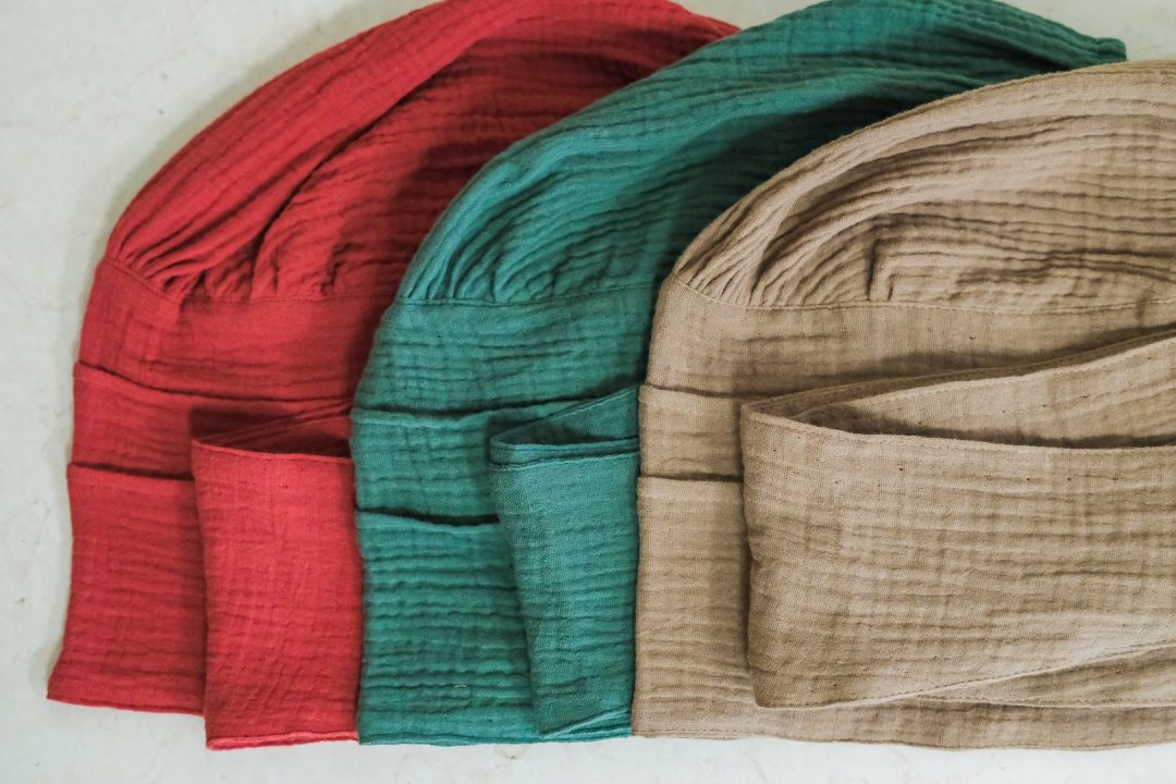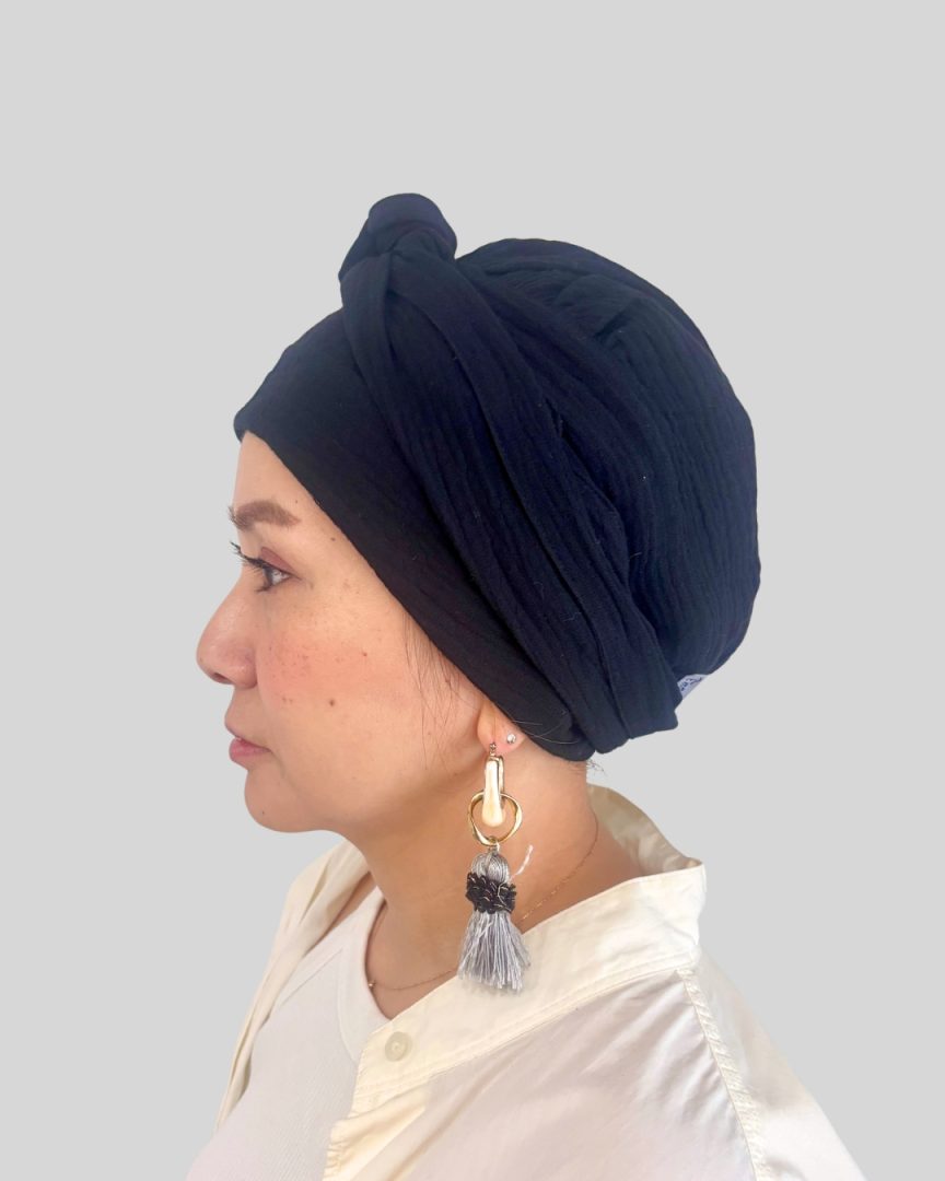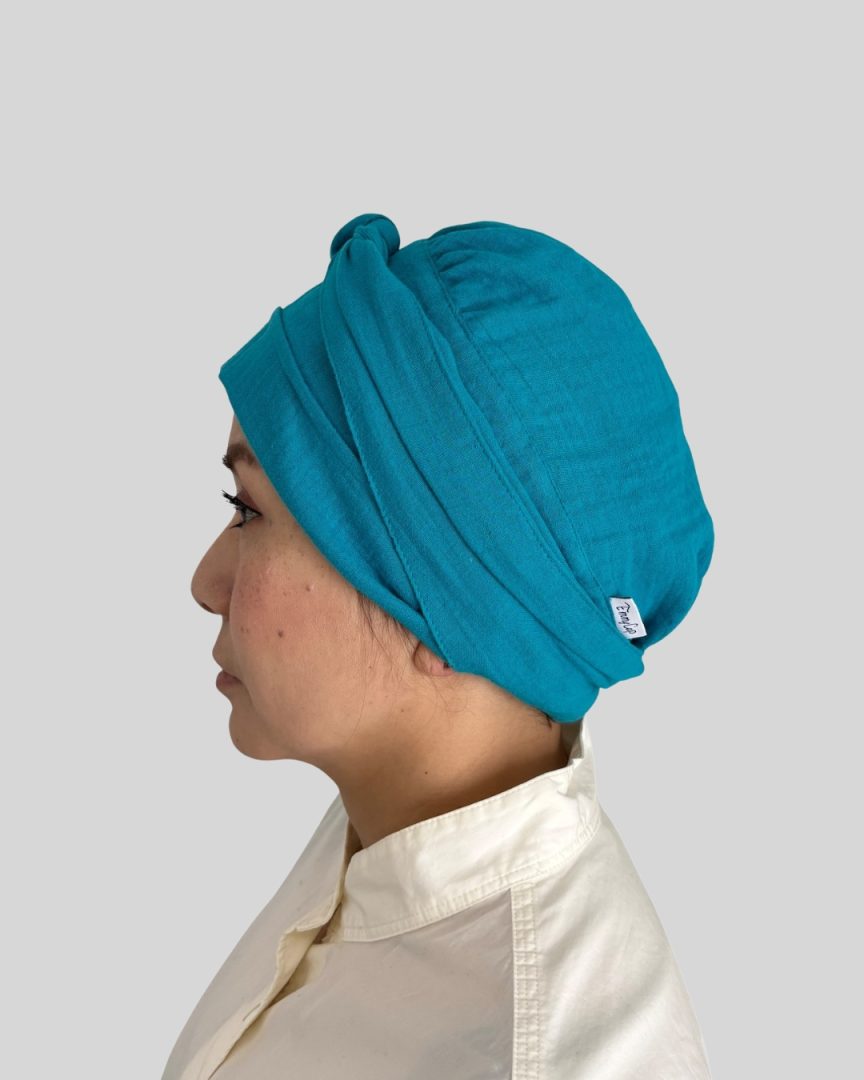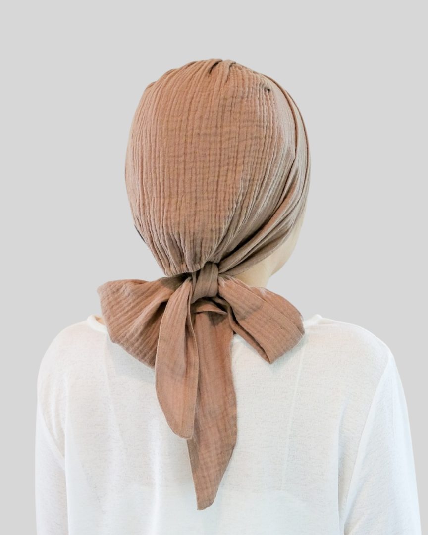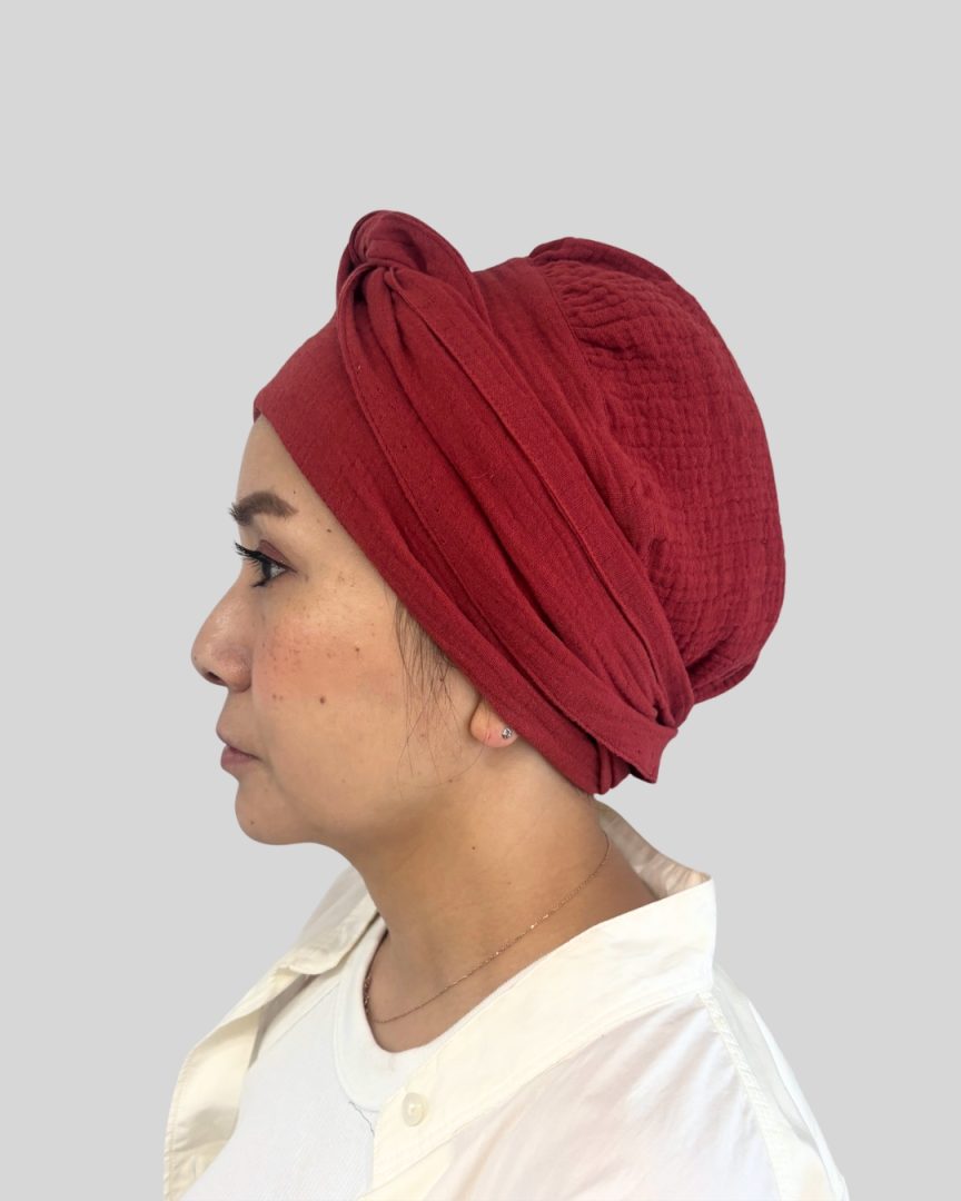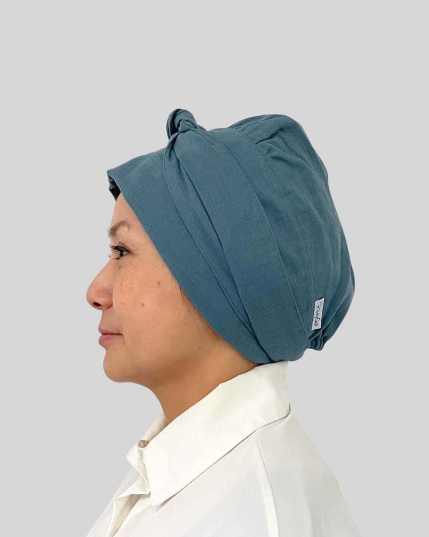 エミーキャップ・ガーゼタイプは、やわらかくて軽く、通気性と吸収性に優れた天然素材です。頭皮が敏感になりやすい治療中の方にも安心してお使いいただけるよう、肌にやさしい綿100%のダブルガーゼを使用。