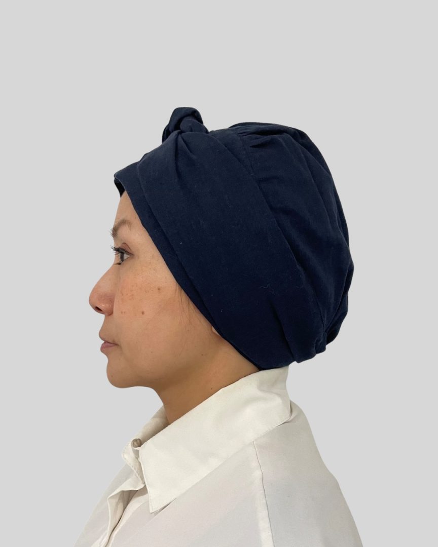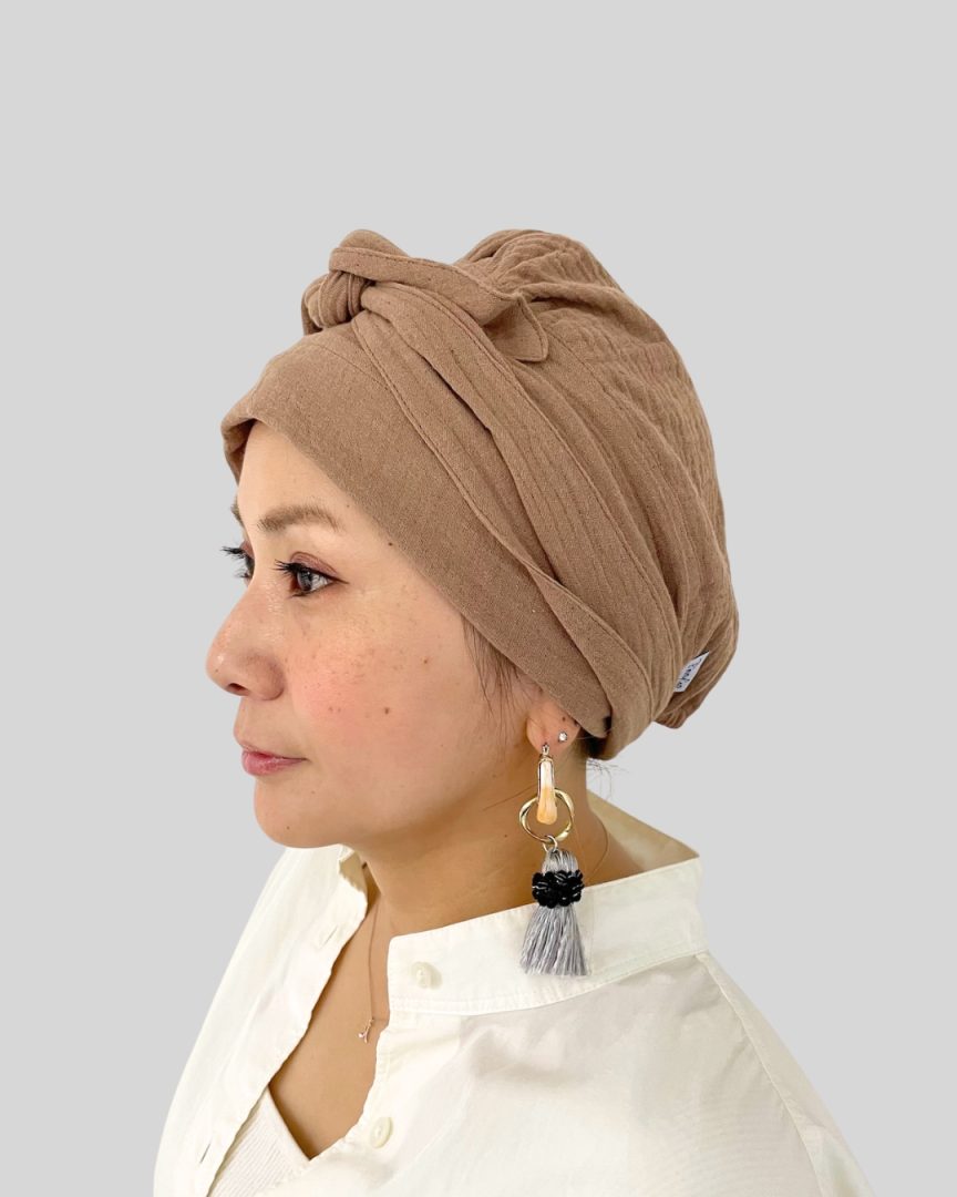 柔らかい生地は、敏感な頭皮にもやさしく、心地よい軽やかな着け心地。
