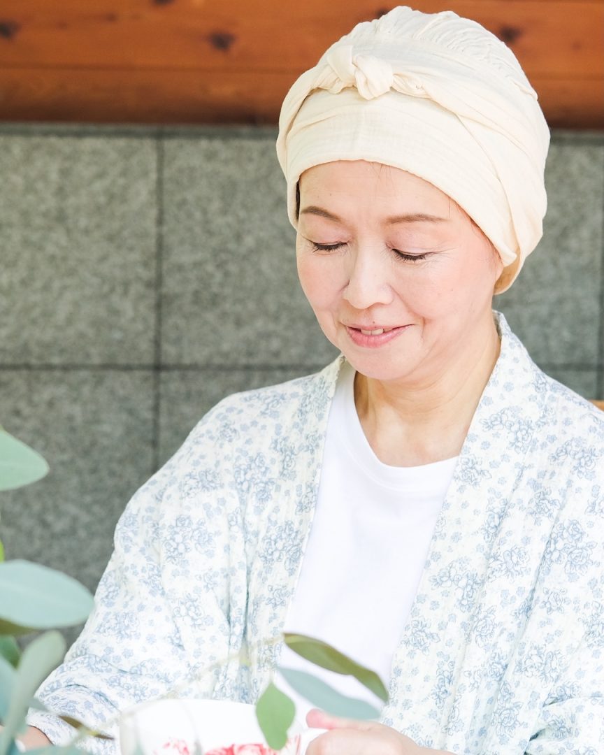 そんな思いで、機能性はもちろん、配色やデザイン、素材にもこだわった医療用ターバン帽子です。